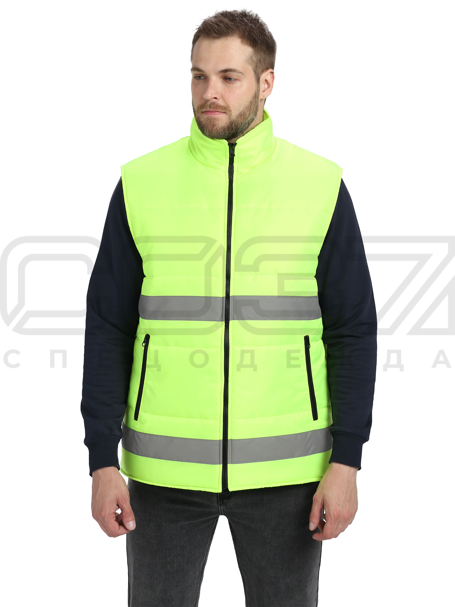 Жилет сигнальный утеплённый "Квазар" с СОП цв.лимонный тк.оксфорд в Владивостоке