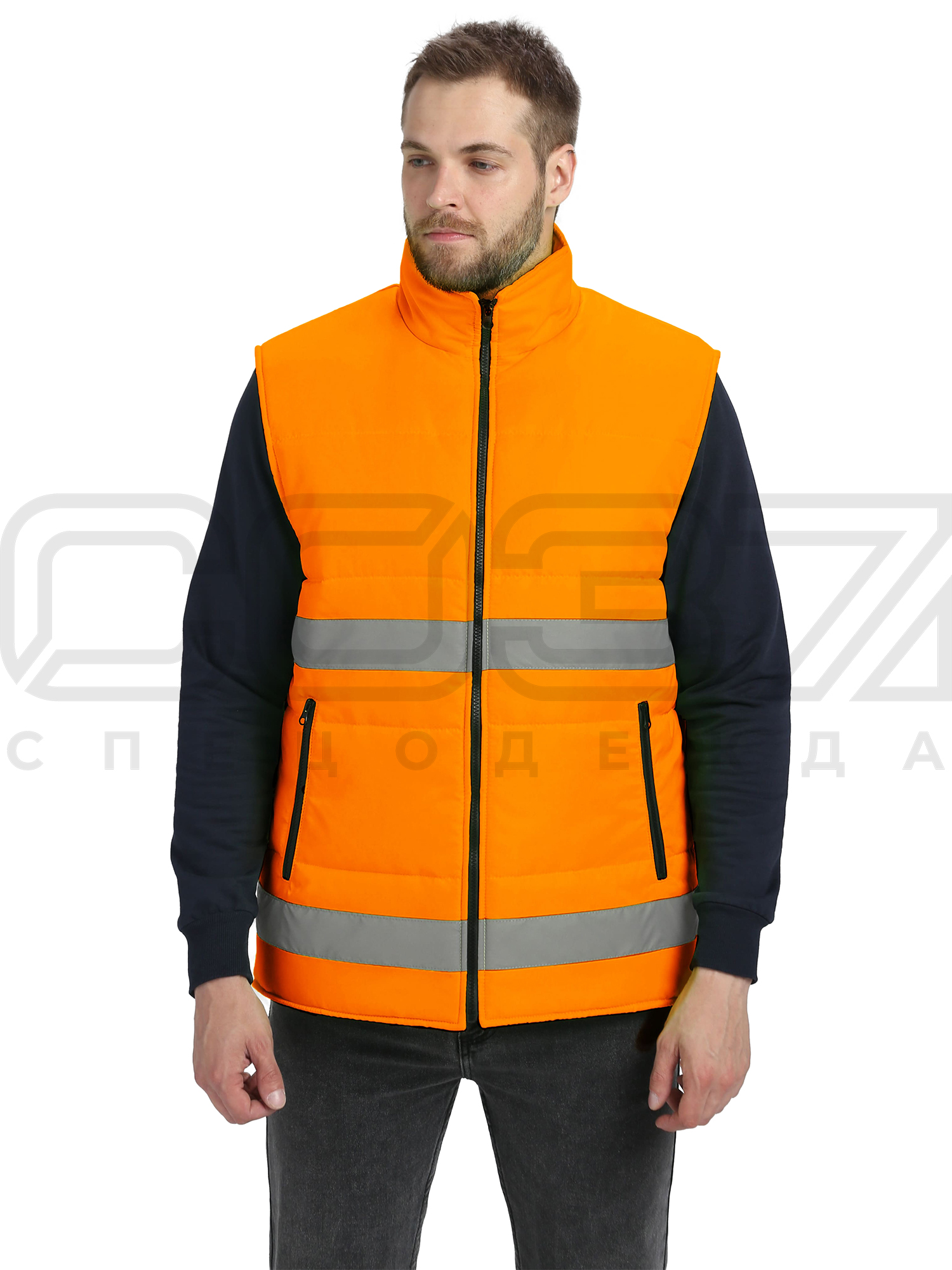 Жилет сигнальный утеплённый "Квазар" с СОП цв.оранжевый тк.оксфорд в Владивостоке