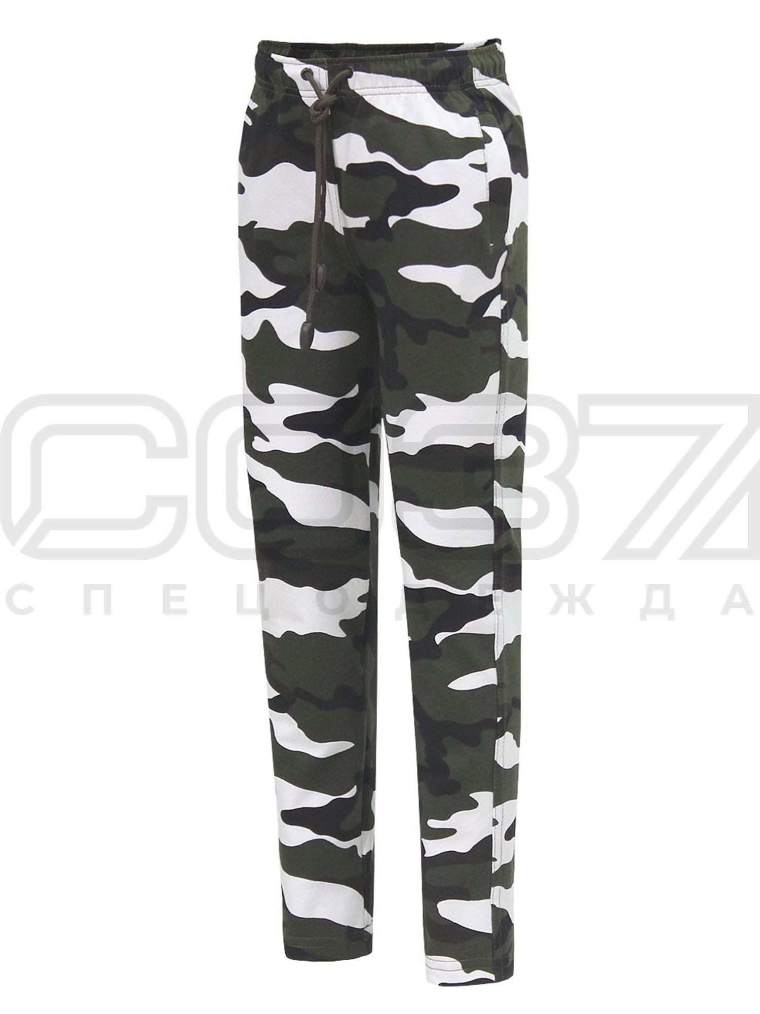 Брюки спортивные "Заряд" цв.бело-зелёный камуфляж 2 тк.футер в Владивостоке