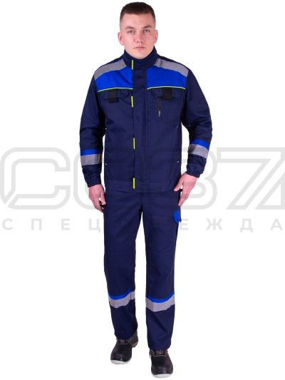 Костюм рабочий "Манчестер" с СОП цв.т.синий/василёк/чёрн (куртка+пк) в Владивостоке