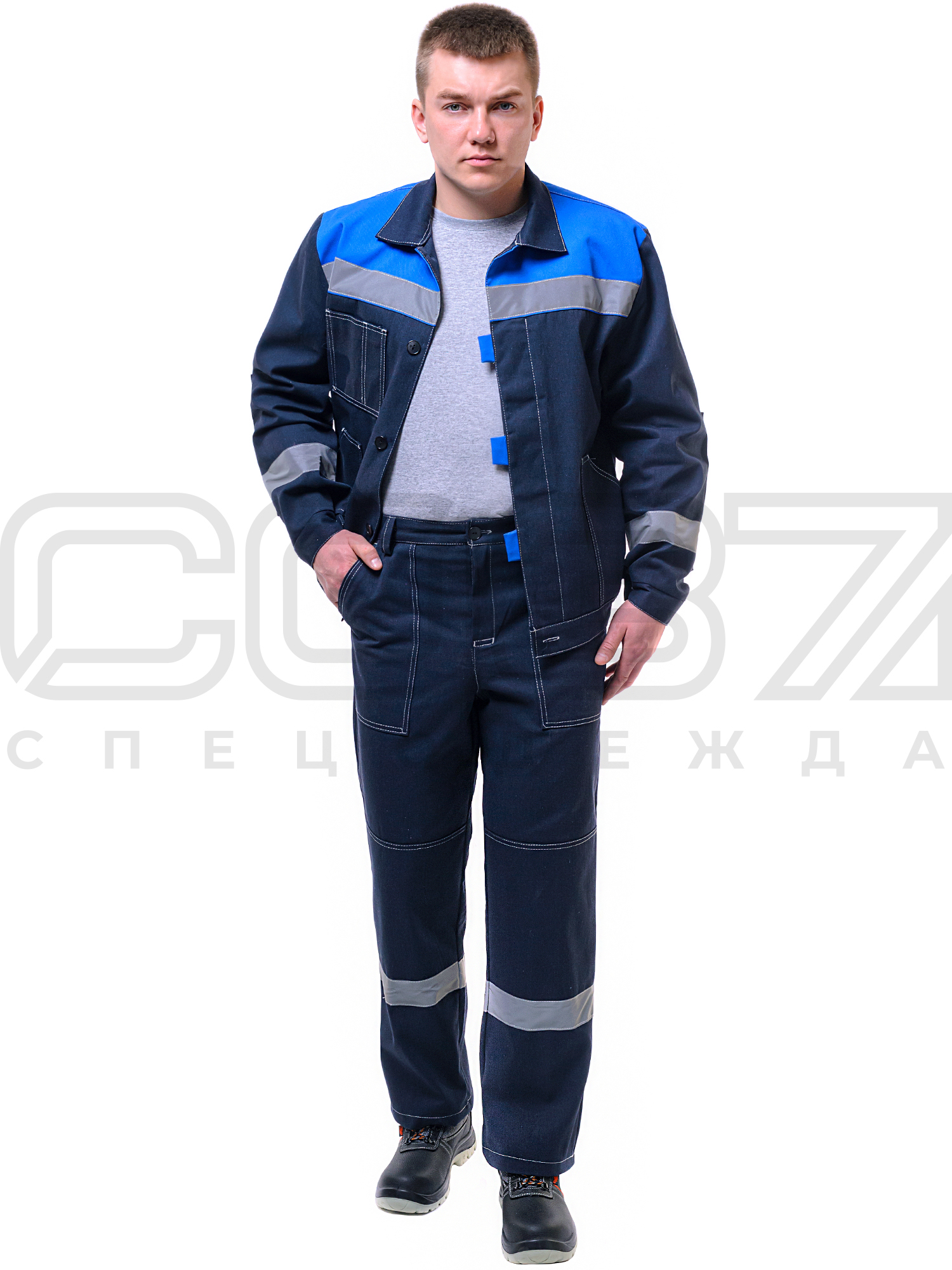 Костюм рабочий "Липецк" с СОП цв.т.синий/василёк тк.Барьер-1 (куртка+брюки) в Владивостоке