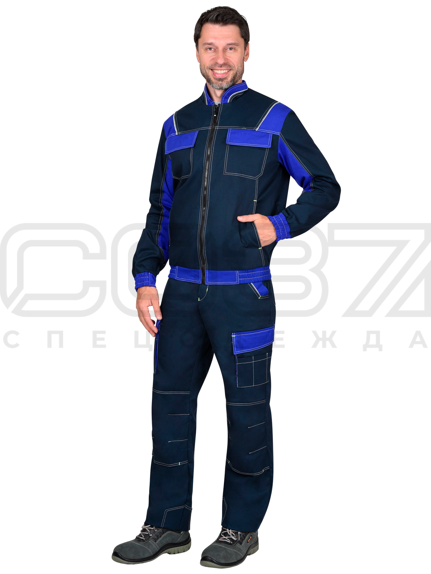 Куртка рабочая "Индиго" цв.т.синий/василёк тк.смесовая в Владивостоке