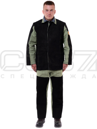 Костюм сварщика комбинированный "Искра" тк.брезент пл.480 гр/м² + спилок 2.3 м в Владивостоке