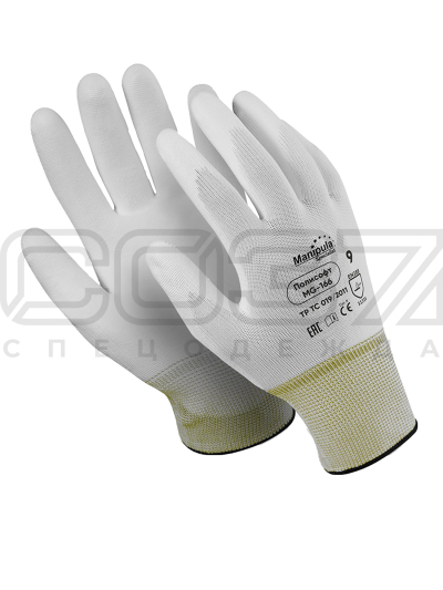 Перчатки нейлоновые белые двойной оверлок 13 класс вязки полиуретан на ладони и пальцах в Владивостоке